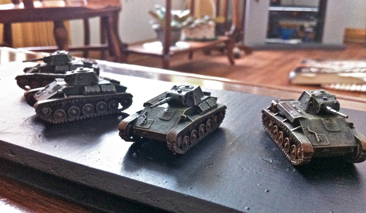 Bringing up the rear we have four Soviet T-70 light tanks.