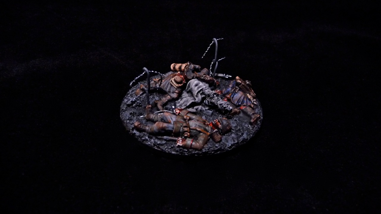 Otherwise the 'dead' will blend into the background and the 'men' will all look like ghosts. Like your early war German in front of the color terrain.
