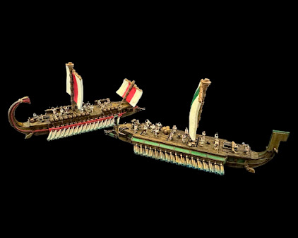 I considered doing his armour with more bling, you know, lots of gold with all the trimmings, but I figured that maybe a more austere, anonymous look would be more appropriate, providing a stark contrast between him and his warriors in their garish bronze, brass an red.