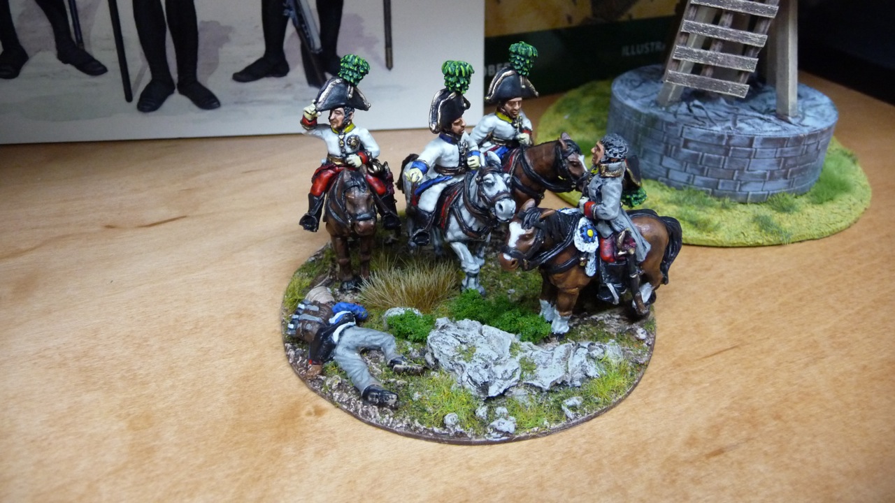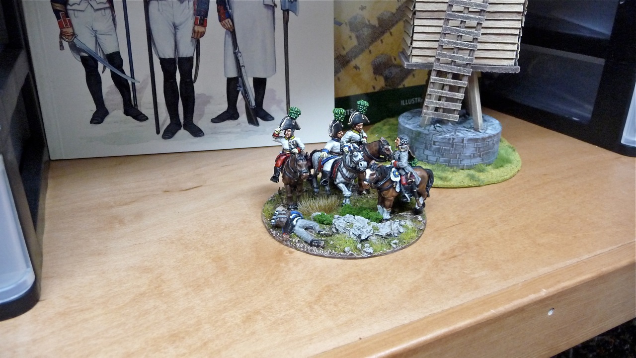 I've based them up to be compatible with many of the 'Grande Manner' rulesets that have been published recently. I also made sure to heavily pin all the figures to their mounts and quadruple-coat with the varnish just in case Greg feels the need to fling it across the table when my French roll over his boys-in-white... ;)